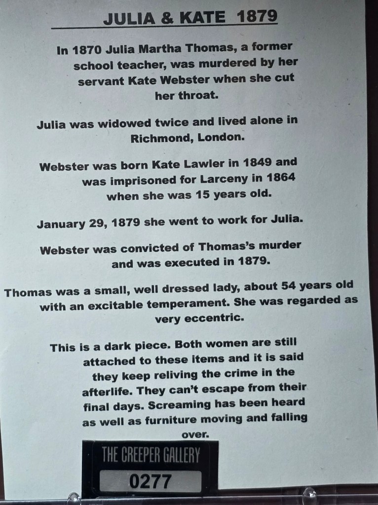 A chest always tells a story, and this is no exception. Julia and Kate have weaved a dramatic story of entangled lives. While I’m unsure of how the woman crossed paths, I can say that their relationship was tumultuous and incredibly rocky from the start. While Julia’s presence seems quiet, behind closed doors I’d use the word “tyrant” to describe her best and you can feel that emanating from the box when it is active. The shrew-like screaming is hers however, not one to take anything lying down, Kate pushes back constantly.