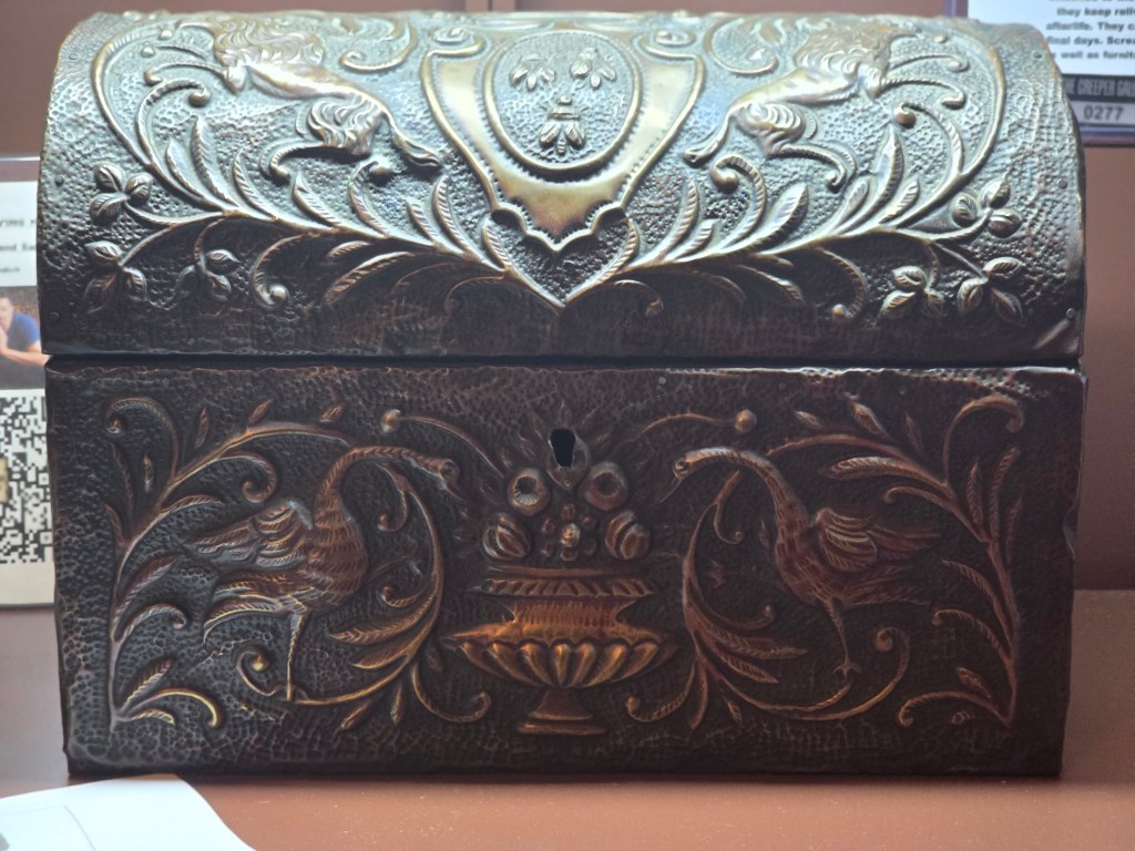 This box reflects tumult. The women argued constantly and passionately, and that energy filled the house daily. Julia kept important items in this chest, along with letters and jewelry that were dear to her. Upon her death, Kate seemingly took on her identity (including wearing that jewelry from the box) and felt no guilt or remorse for the loss of this woman who posed as an employer, friend and foe constantly.