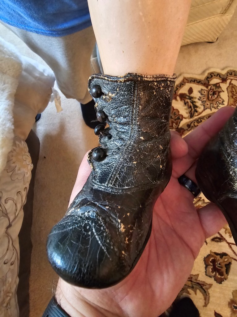 Doretta and her husband probably bought this doll for their daughters in a larger city. This beautiful rosy-cheeked doll was well-loved by her family. Doretta and Charles had a large family. I see at 12 children who were born, but at least three did not survive.