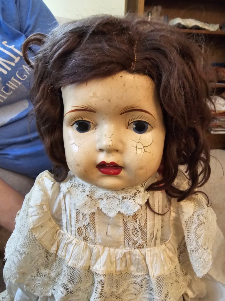 Attached to this doll is the spirit of a little girl, whose name was Katharina Elisabetha. She was born in 1910 in Germany, the youngest of six children. Her family settled in Pennsylvania. Of all the children, Katharina was her father’s favorite. He had more time to spend with her than he did any of the other children. And she looked like an angel with dark curly hair and big eyes.